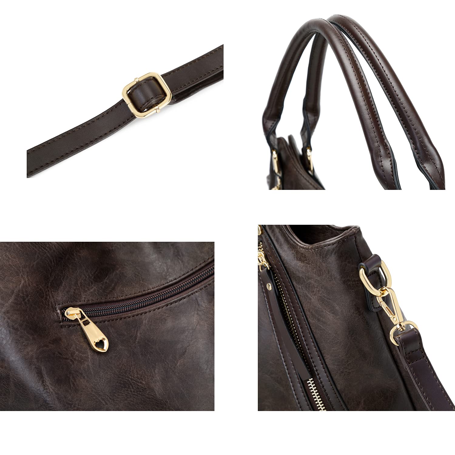 Bolso de mano y bolso de hombro para mujer de cuero PU con correa ajustable, color café oscuro, tamaño grande, estilo moderno y práctico
